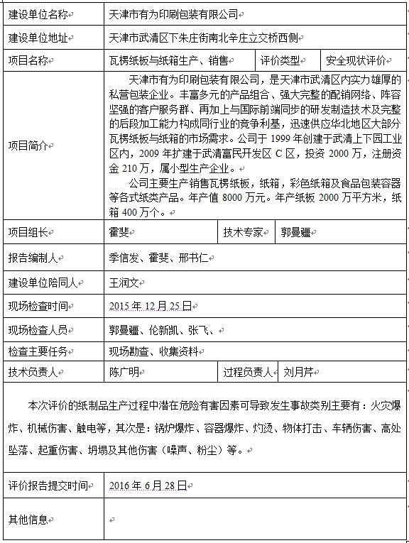 天津市有為印刷包裝有限公司-安全現(xiàn)狀評(píng)價(jià)